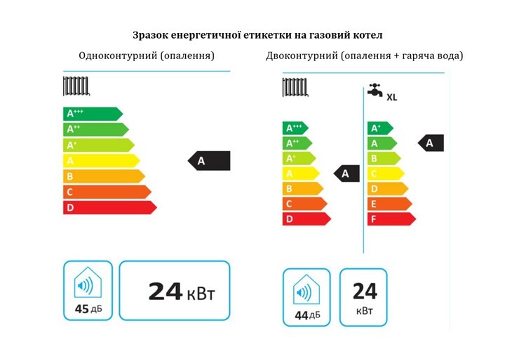 Кожен газовий котел повинен мати вже знайому споживачу енергетичну етикетку, яка вказує на клас енергоефективності.